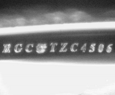This image is an actual photograph of the laser inscription on this particular gemstone. Photography is done using a microscope camera at 45 x magnification to render the image.