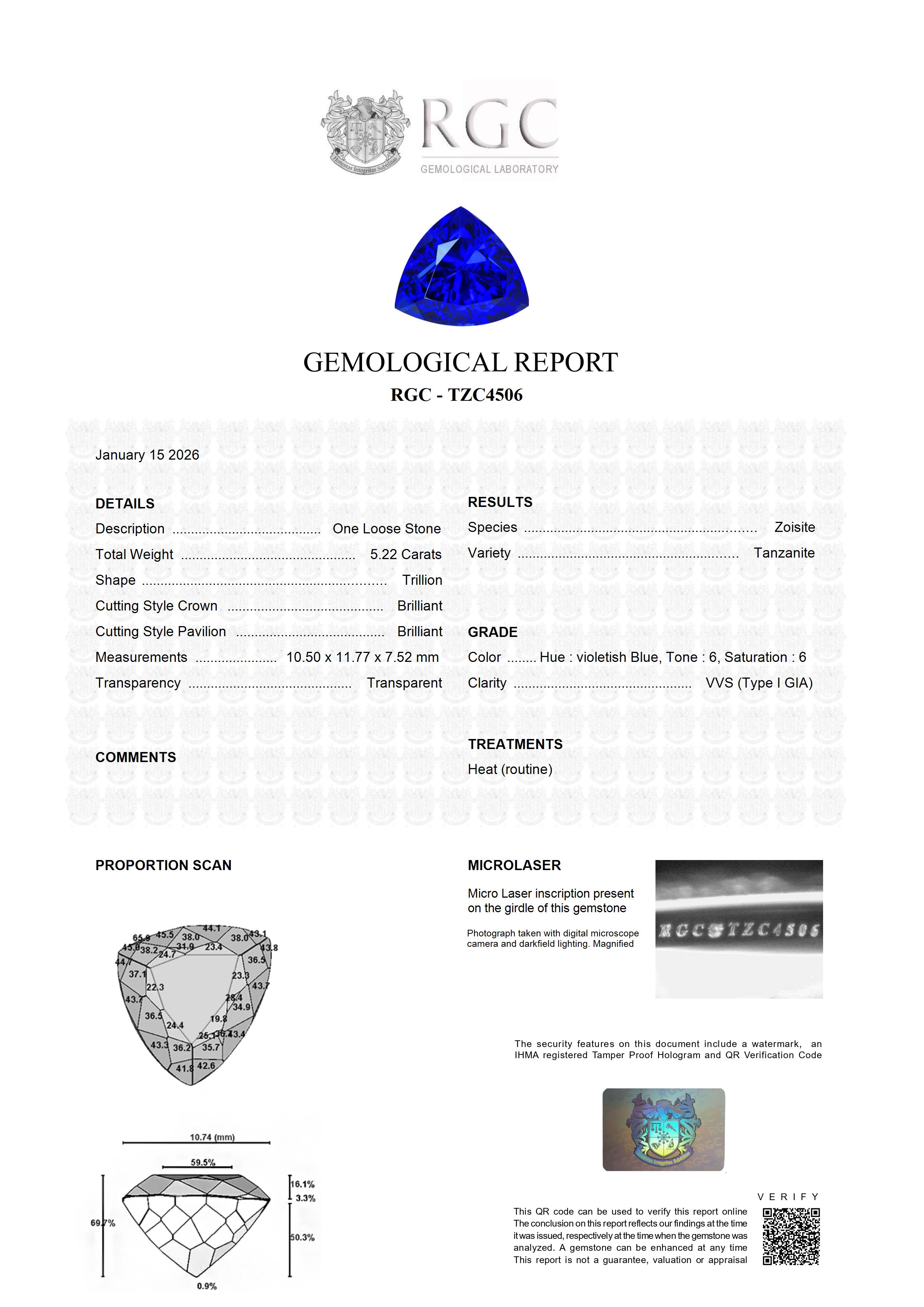 You can view the report in the “Grading and Laboratory Certification” section below.