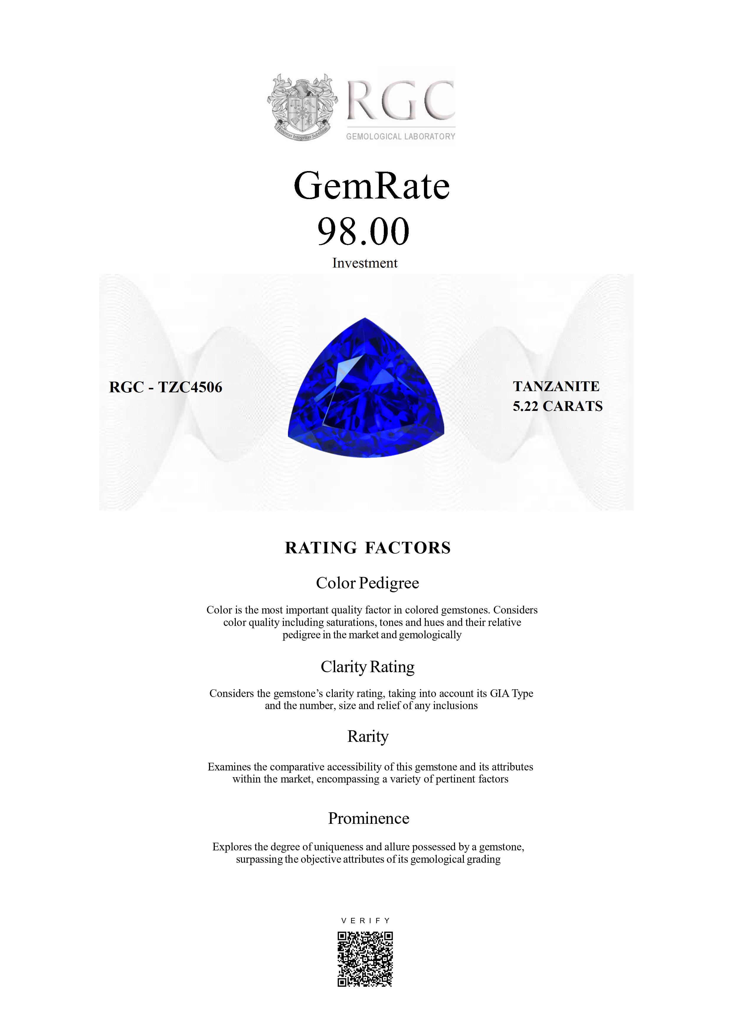 The RGC GemRate is a revolutionary system that addresses the importance and difficulty of comparing different colored gemstones with their peers in the marketplace. It assesses a wide variety of factors that exist in the marketplace and gemologically to classify gems in their genre using a standardized rating system. These factors are myriad but include quantifiable factors like color grade, clarity and cut, rarity factors examining relative rarity and also qualitative factors such as prominence, which examines the degree to which a gemstone stands out and captivates beyond just its measurable quality traits. It's essentially the stone's ability to catch attention and distinguish itself from others.