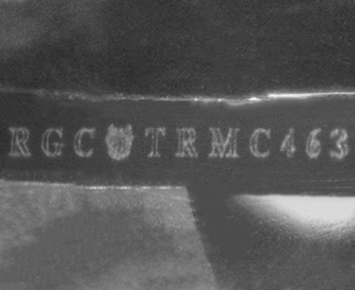 This image is an actual photograph of the laser inscription on this particular gemstone. Photography is done using a microscope camera at 45 x magnification to render the image.