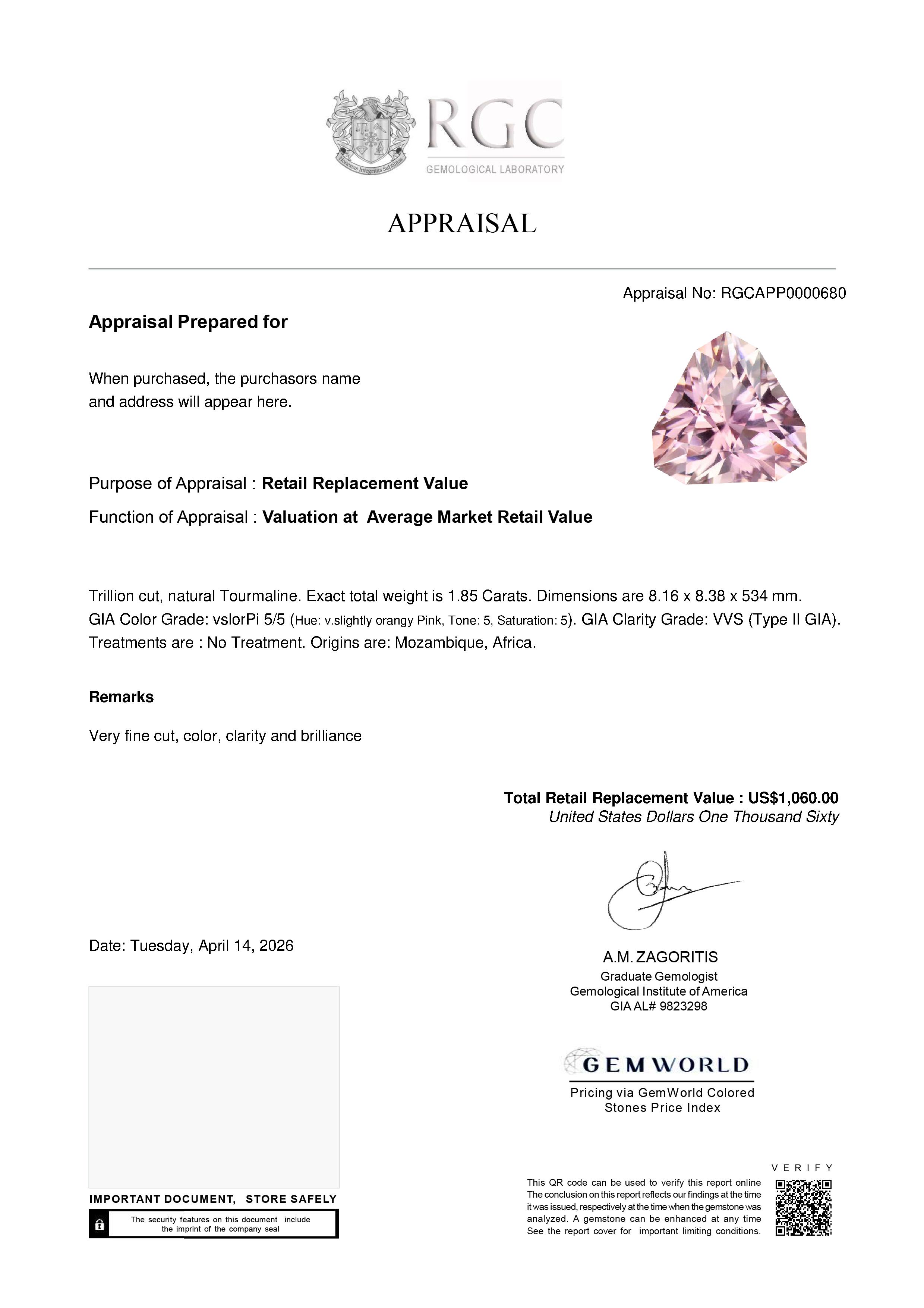 Our GemRate system was devised by our GIA Gemologists to provide a snapshot of a gemstone’s pedigree. This report is shipped with the gemstone.