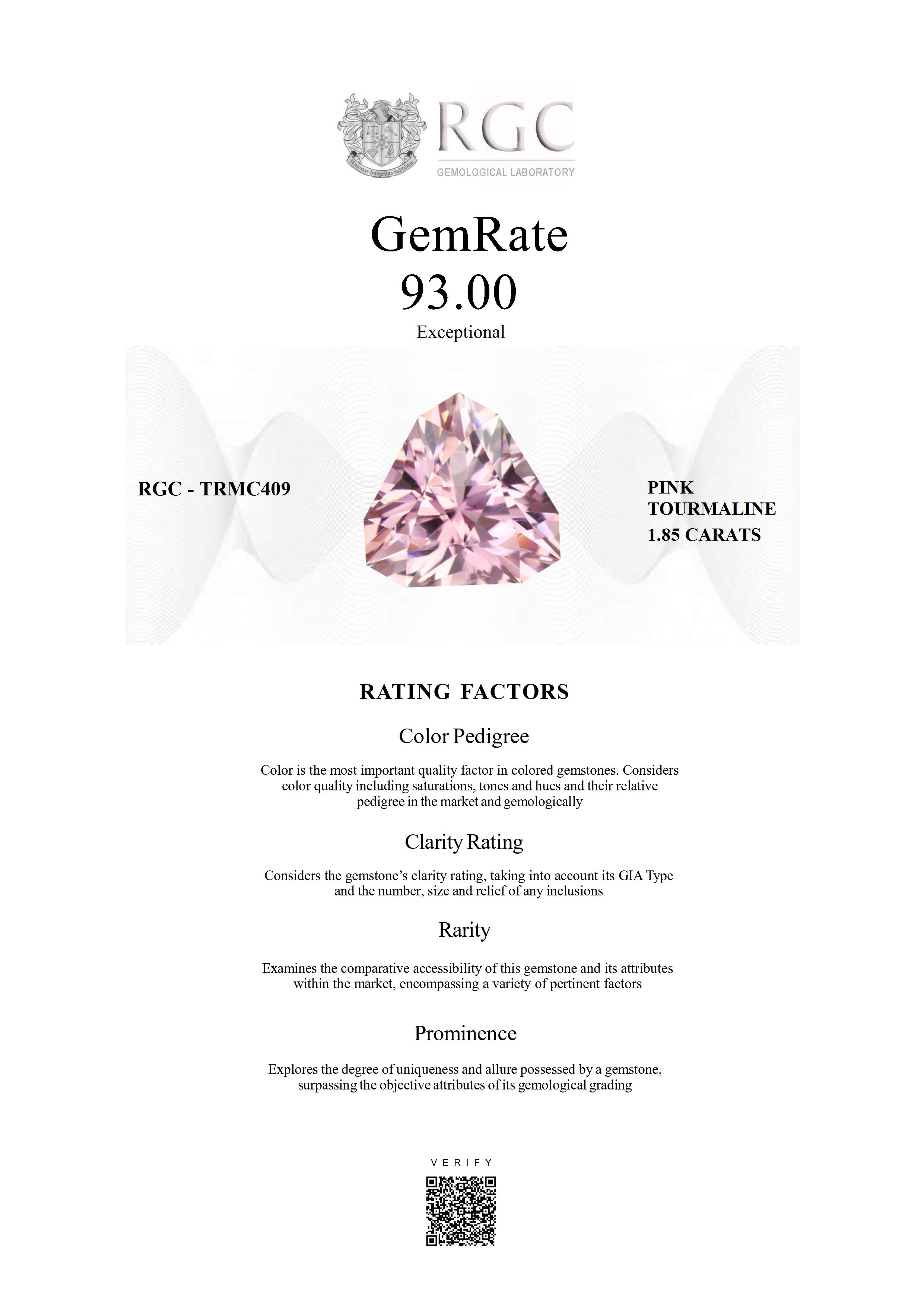 The RGC GemRate is a revolutionary system that addresses the importance and difficulty of comparing different colored gemstones with their peers in the marketplace. It assesses a wide variety of factors that exist in the marketplace and gemologically to classify gems in their genre using a standardized rating system. These factors are myriad but include quantifiable factors like color grade, clarity and cut, rarity factors examining relative rarity and also qualitative factors such as prominence, which examines the degree to which a gemstone stands out and captivates beyond just its measurable quality traits. It's essentially the stone's ability to catch attention and distinguish itself from others.