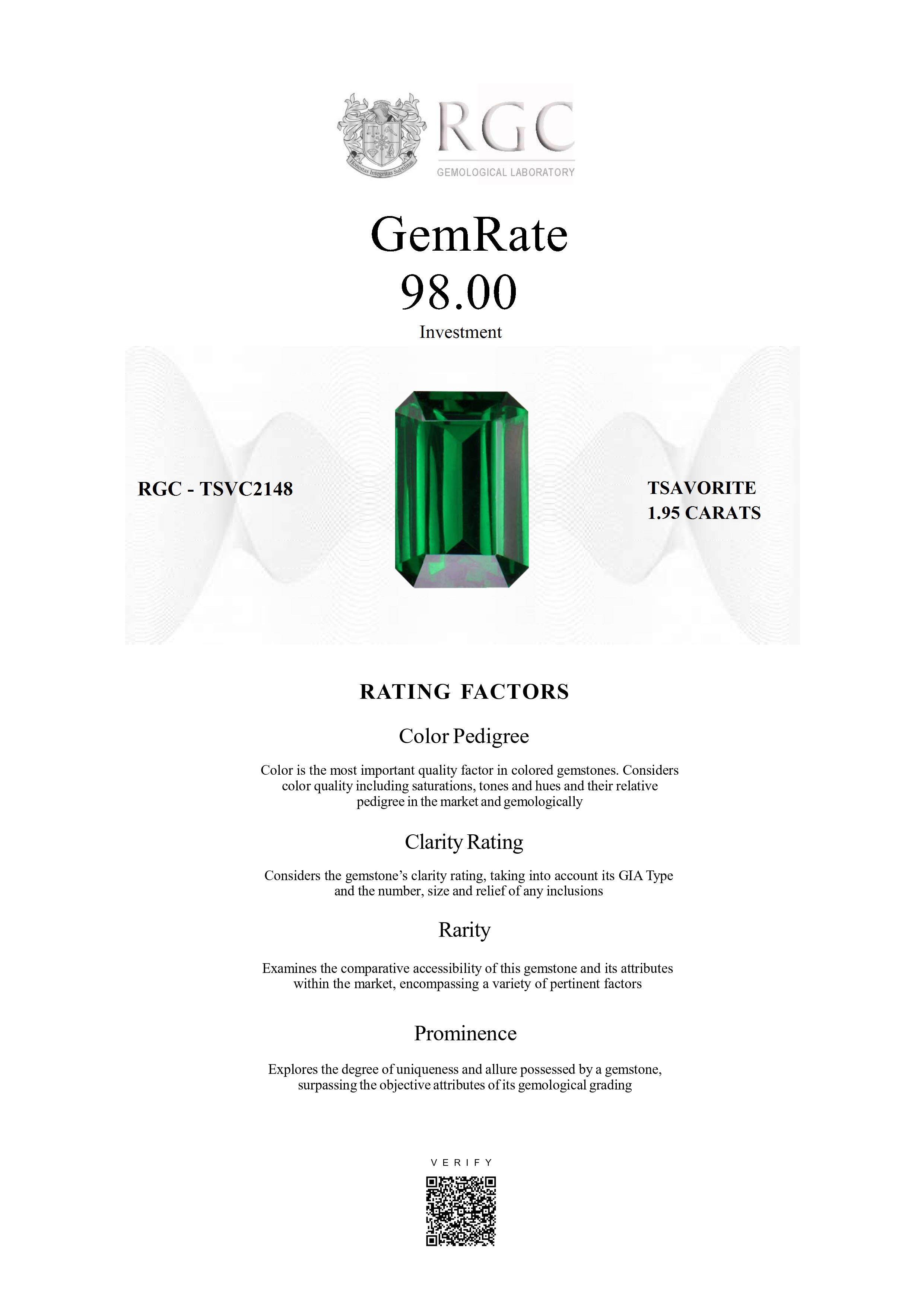 The RGC GemRate is a revolutionary system that addresses the importance and difficulty of comparing different colored gemstones with their peers in the marketplace. It assesses a wide variety of factors that exist in the marketplace and gemologically to classify gems in their genre using a standardized rating system. These factors are myriad but include quantifiable factors like color grade, clarity and cut, rarity factors examining relative rarity and also qualitative factors such as prominence, which examines the degree to which a gemstone stands out and captivates beyond just its measurable quality traits. It's essentially the stone's ability to catch attention and distinguish itself from others.