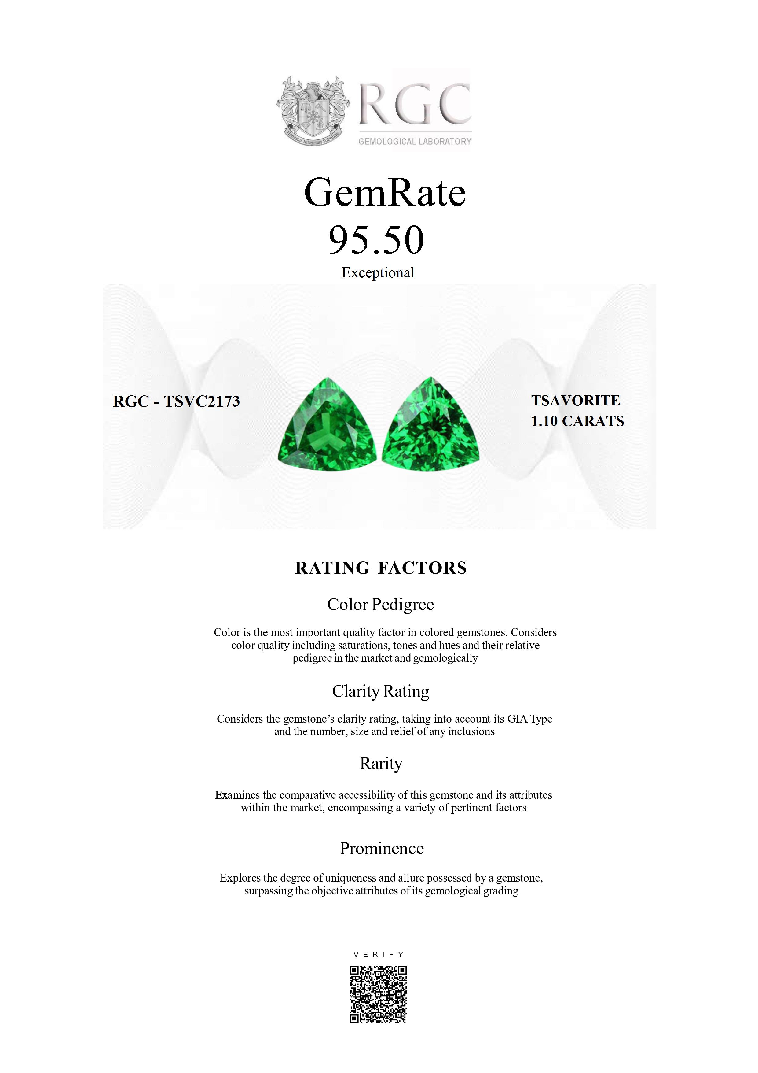 The RGC GemRate is a revolutionary system that addresses the importance and difficulty of comparing different colored gemstones with their peers in the marketplace. It assesses a wide variety of factors that exist in the marketplace and gemologically to classify gems in their genre using a standardized rating system. These factors are myriad but include quantifiable factors like color grade, clarity and cut, rarity factors examining relative rarity and also qualitative factors such as prominence, which examines the degree to which a gemstone stands out and captivates beyond just its measurable quality traits. It's essentially the stone's ability to catch attention and distinguish itself from others.