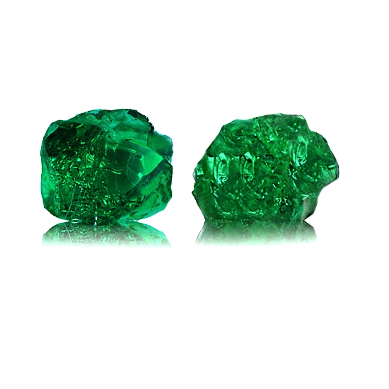 This Tsavorite is over 1.2 Billion Years old. After being removed from the vein and "knocked" to remove the host rock, this Tsavorite weighed 0.925 Grams. The photograph on the left, shows it as it looked at this stage in its journey. Tests showed it has a Specific Gravity of 3.61, an optic character of SR and it formed in the Othorhombic crystal system. Its Chemical Composition is Calcium Alluminium Silicate and its Cause of Color is Vanadium