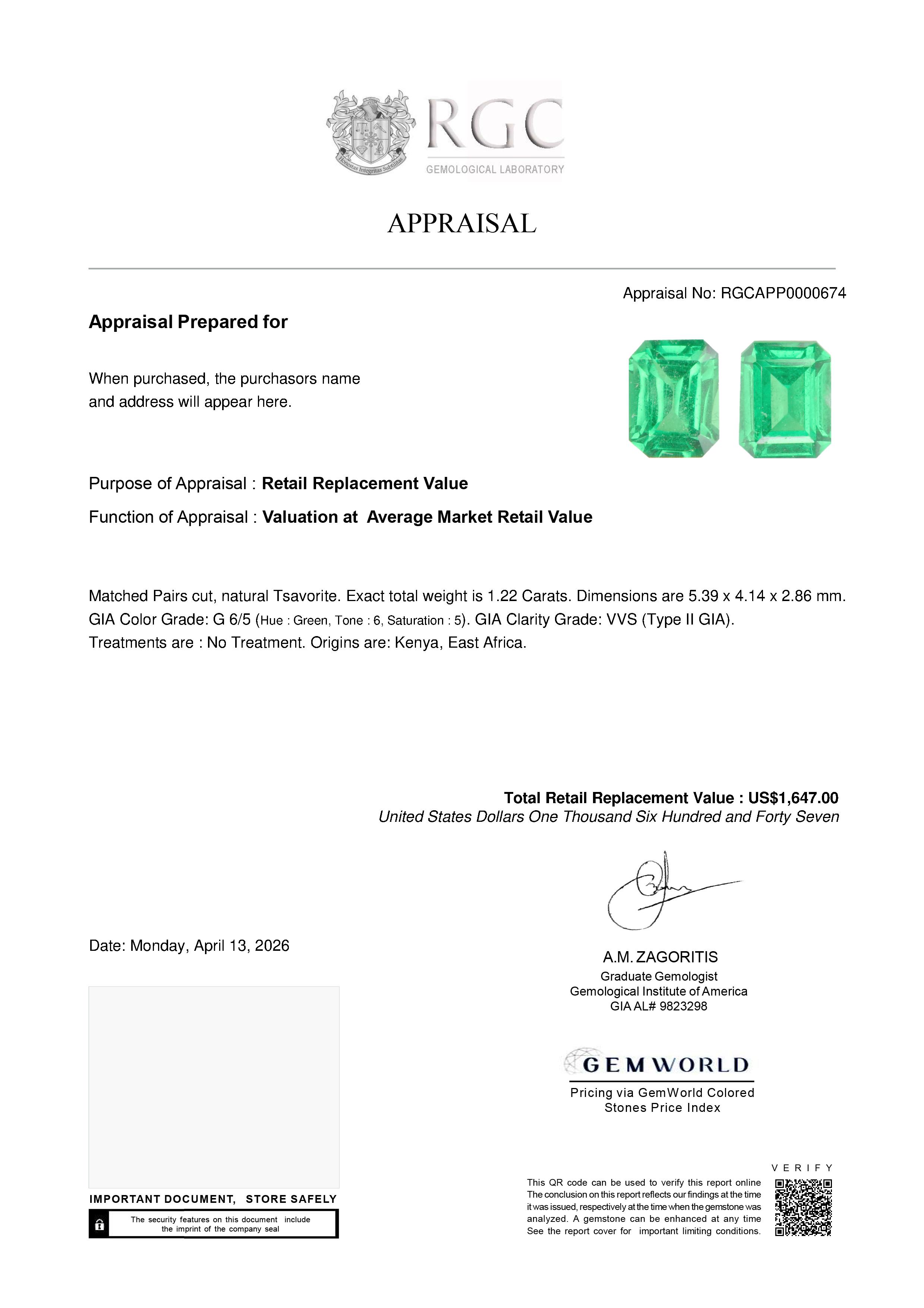 Our GemRate system was devised by our GIA Gemologists to provide a snapshot of a gemstone’s pedigree. This report is shipped with the gemstone.