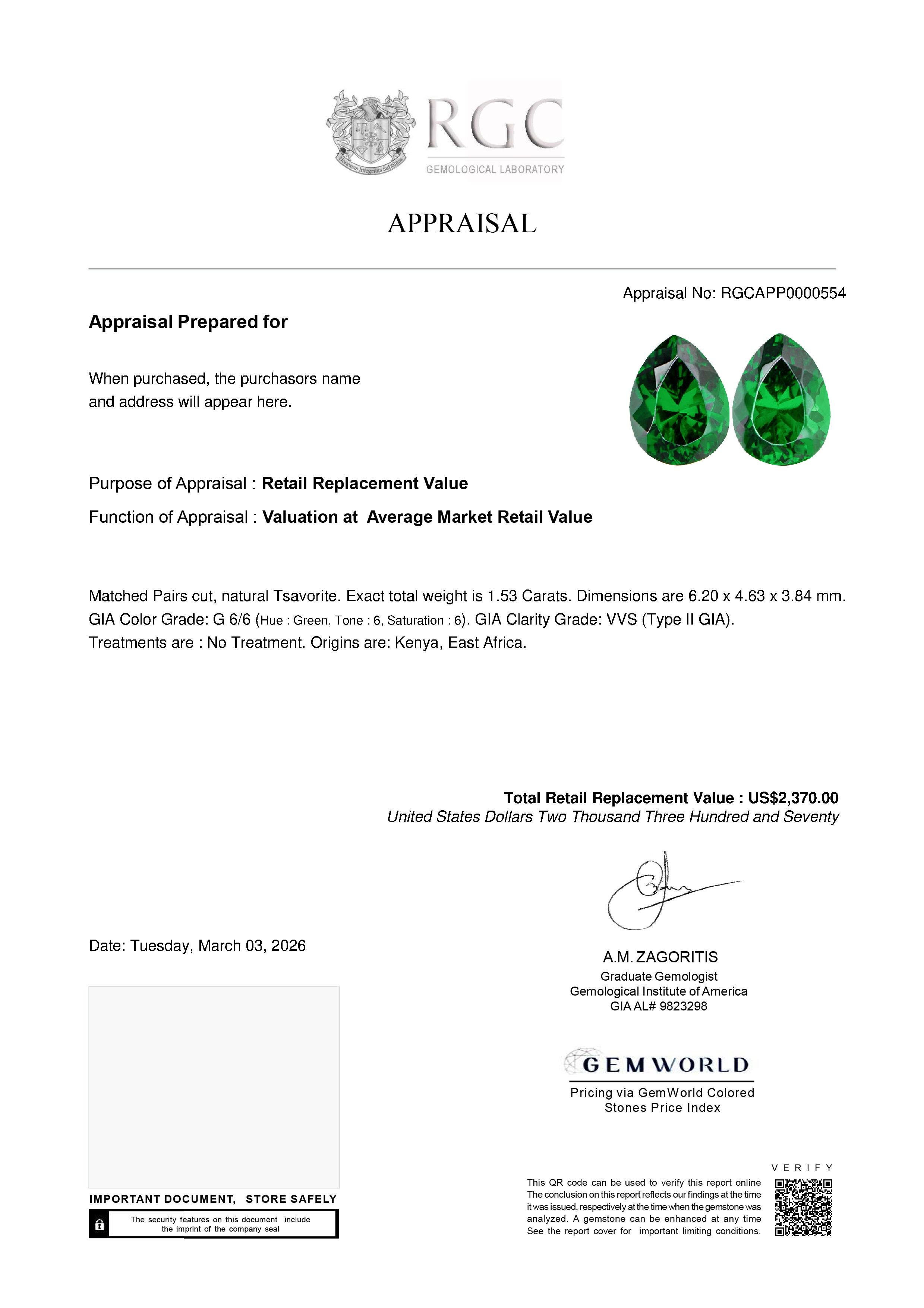 Our GemRate system was devised by our GIA Gemologists to provide a snapshot of a gemstone’s pedigree. This report is shipped with the gemstone.