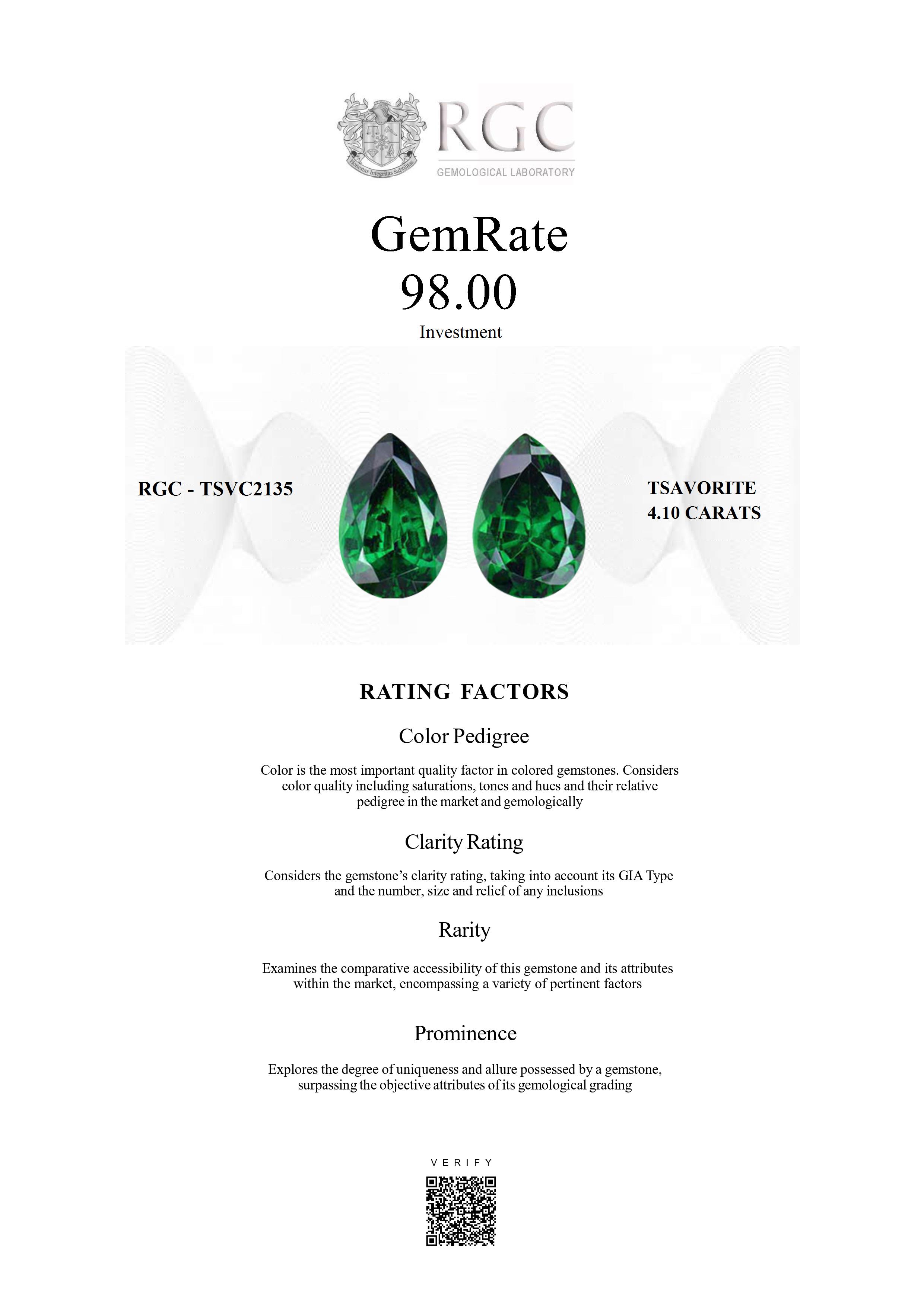 The RGC GemRate is a revolutionary system that addresses the importance and difficulty of comparing different colored gemstones with their peers in the marketplace. It assesses a wide variety of factors that exist in the marketplace and gemologically to classify gems in their genre using a standardized rating system. These factors are myriad but include quantifiable factors like color grade, clarity and cut, rarity factors examining relative rarity and also qualitative factors such as prominence, which examines the degree to which a gemstone stands out and captivates beyond just its measurable quality traits. It's essentially the stone's ability to catch attention and distinguish itself from others.