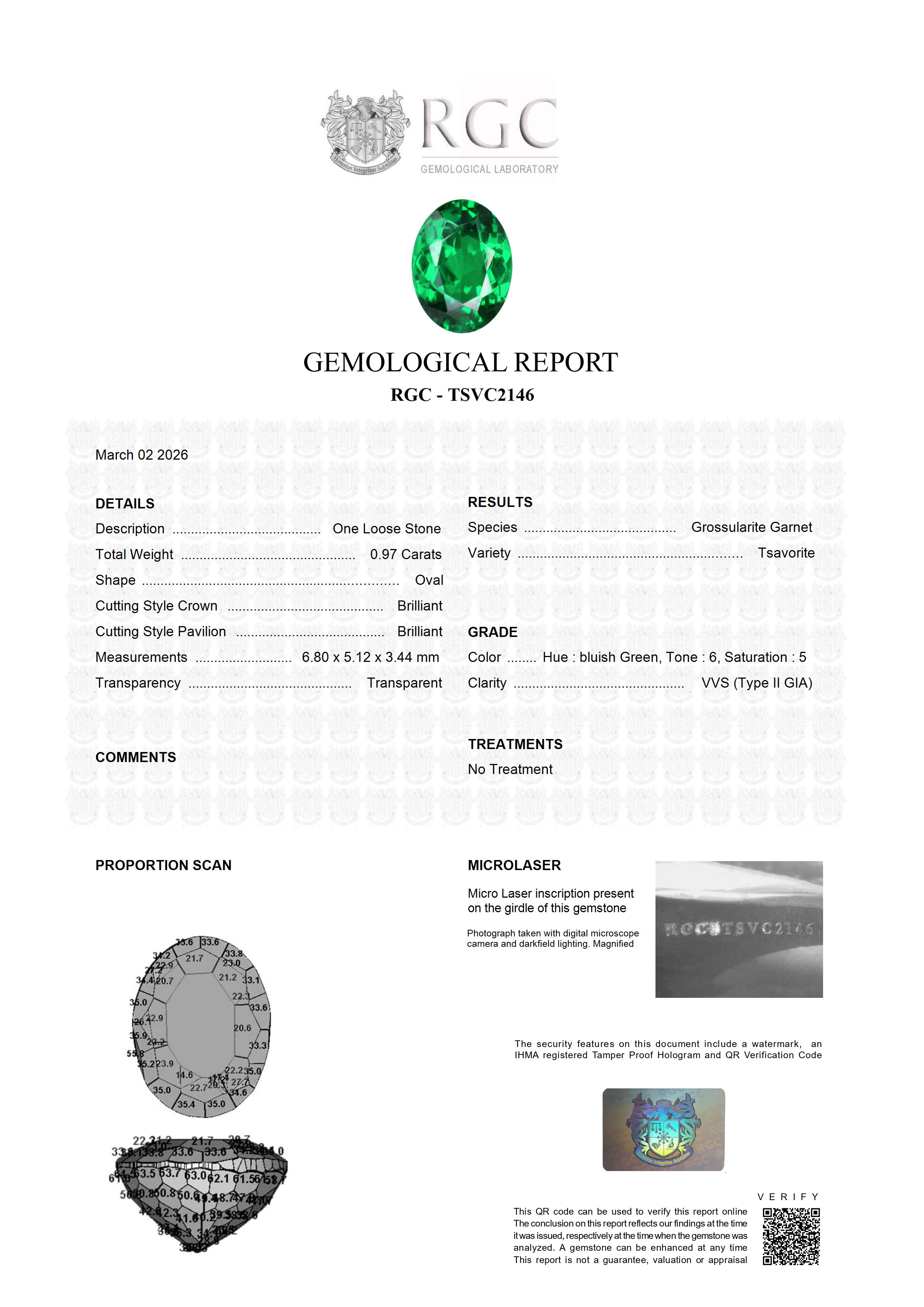 You can view the report in the “Grading and Laboratory Certification” section below.