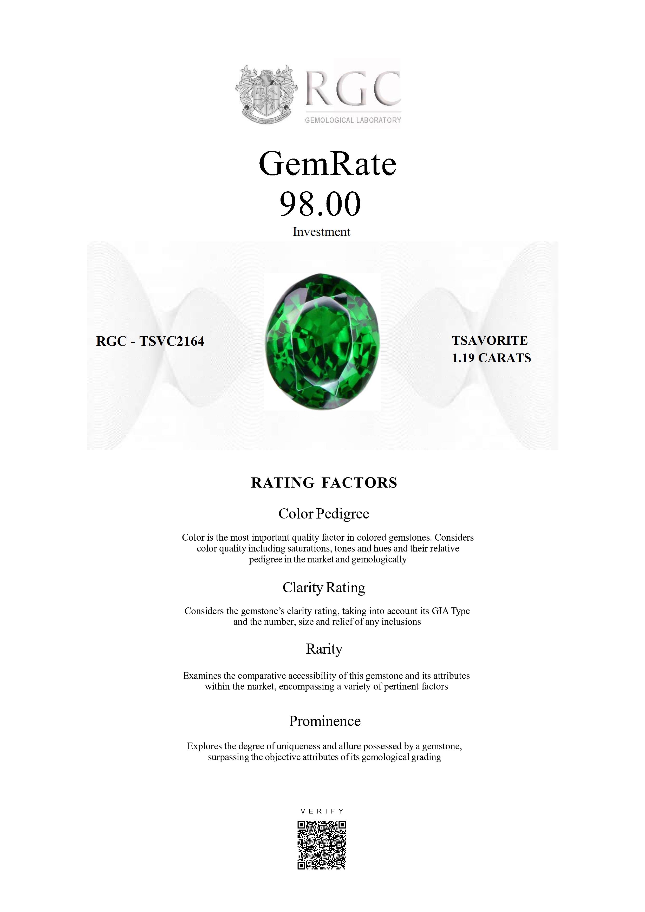 The RGC GemRate is a revolutionary system that addresses the importance and difficulty of comparing different colored gemstones with their peers in the marketplace. It assesses a wide variety of factors that exist in the marketplace and gemologically to classify gems in their genre using a standardized rating system. These factors are myriad but include quantifiable factors like color grade, clarity and cut, rarity factors examining relative rarity and also qualitative factors such as prominence, which examines the degree to which a gemstone stands out and captivates beyond just its measurable quality traits. It's essentially the stone's ability to catch attention and distinguish itself from others.