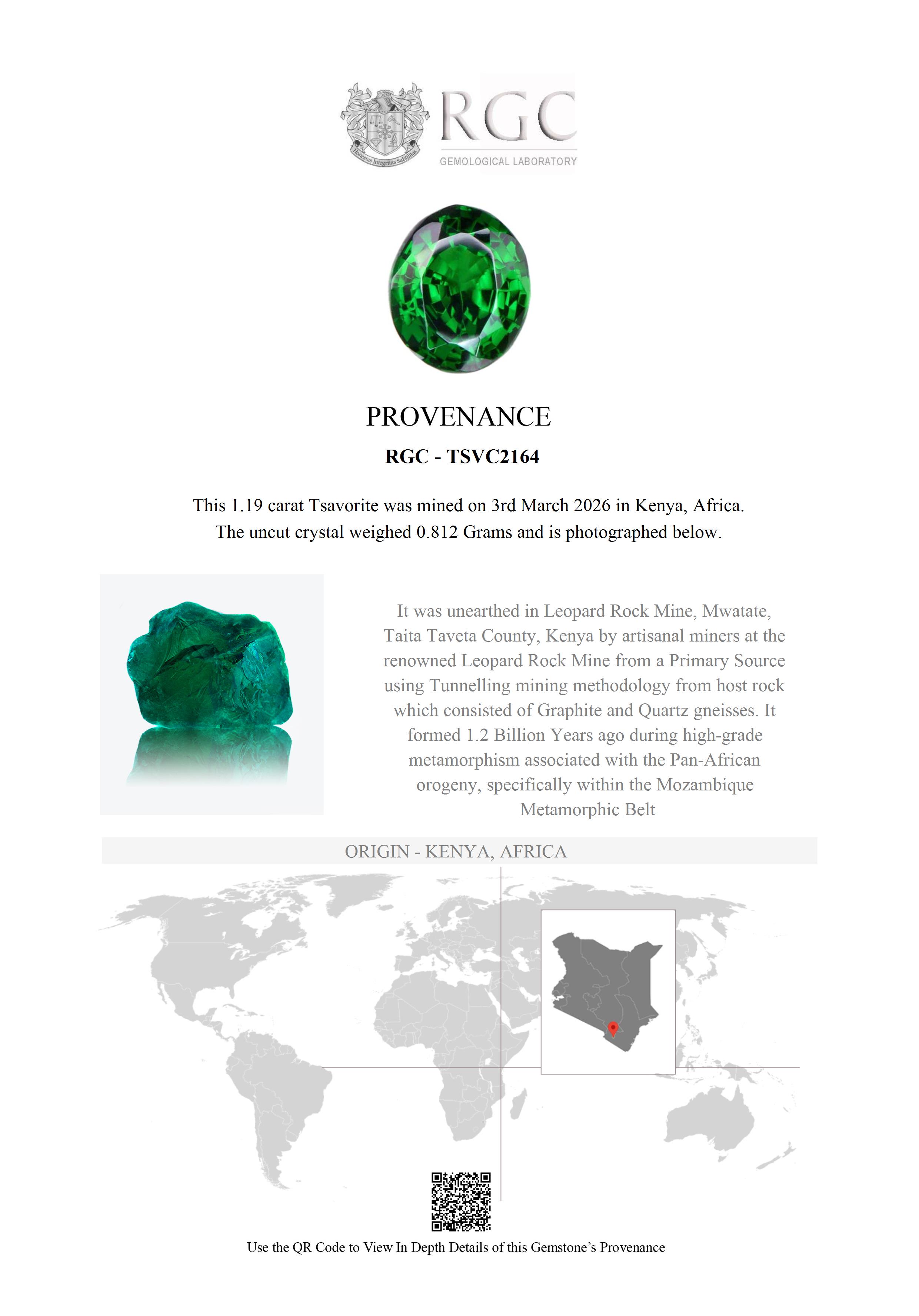 Whilst Tsavorite is found in both Kenya and Tanzania, the very finest Tsavorites are still found in the original deposits based in the Tsavo district of Kenya. Their colors are a purer, unadulterated green hue whilst their Tanzanian counterparts tend to have a strong yellow modifier.