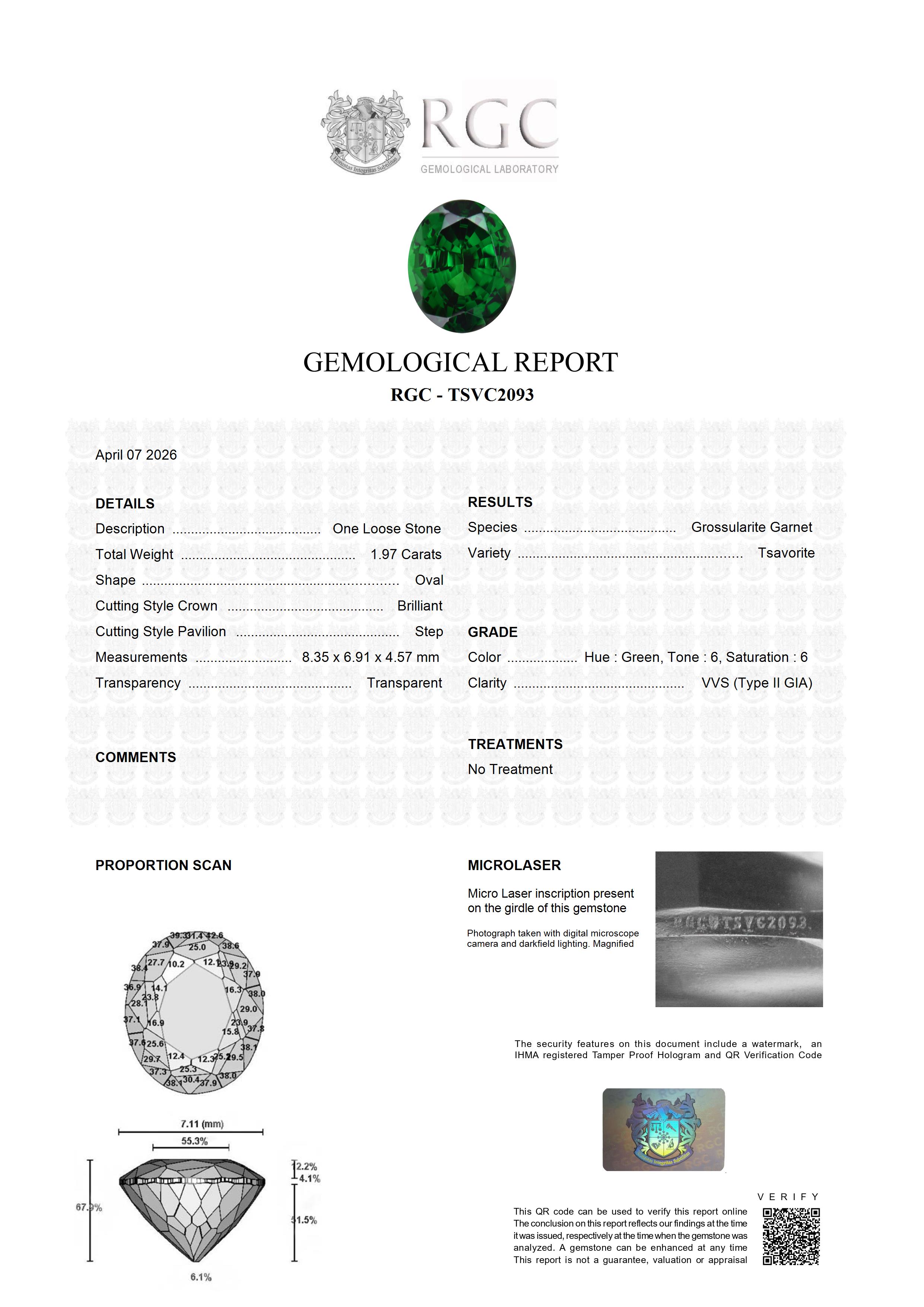Several unique reports are shipped with this gemstone