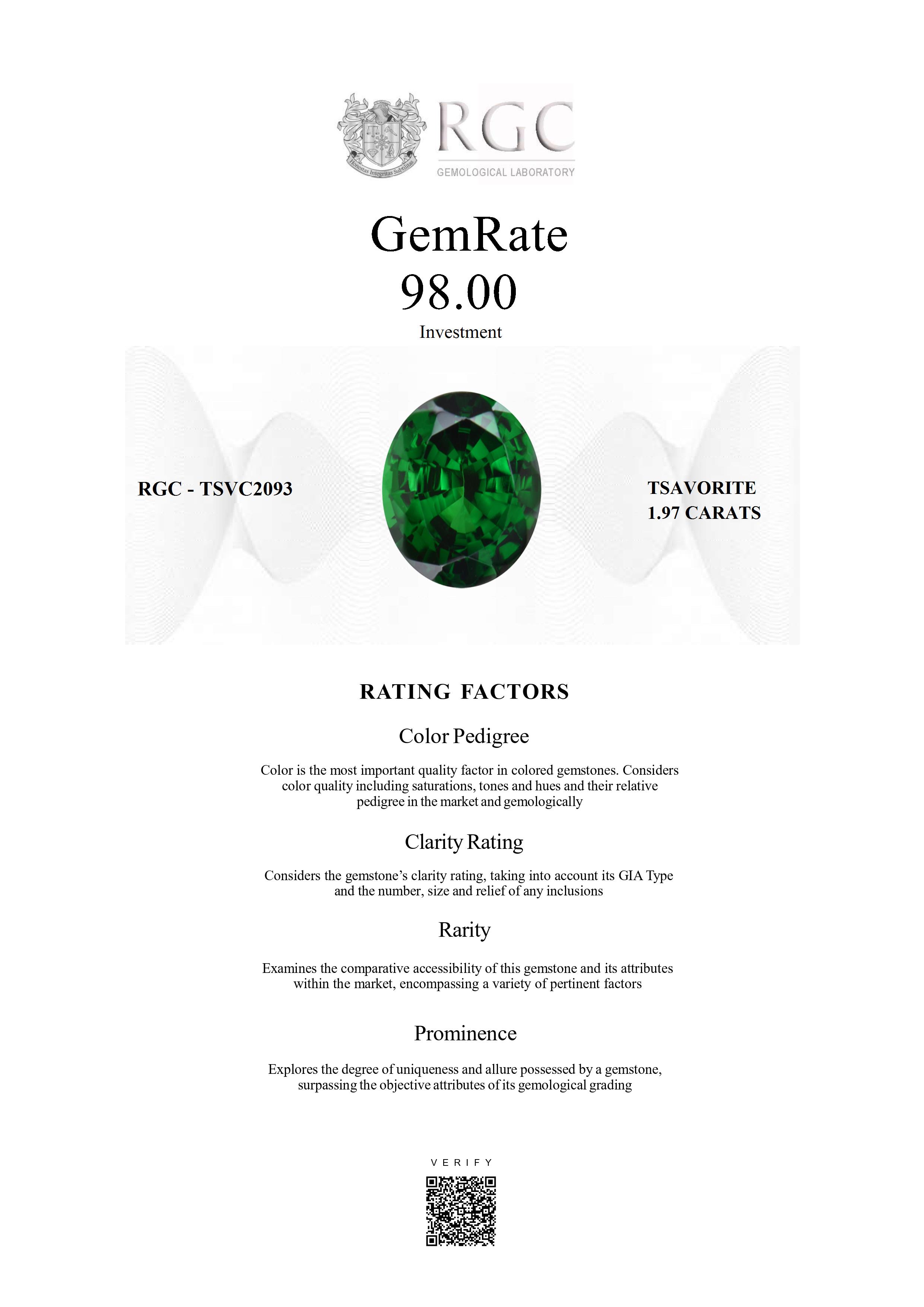 The RGC GemRate is a revolutionary system that addresses the importance and difficulty of comparing different colored gemstones with their peers in the marketplace. It assesses a wide variety of factors that exist in the marketplace and gemologically to classify gems in their genre using a standardized rating system. These factors are myriad but include quantifiable factors like color grade, clarity and cut, rarity factors examining relative rarity and also qualitative factors such as prominence, which examines the degree to which a gemstone stands out and captivates beyond just its measurable quality traits. It's essentially the stone's ability to catch attention and distinguish itself from others.
