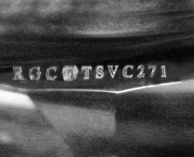 This image is an actual photograph of the laser inscription on this particular gemstone. Photography is done using a microscope camera at 45 x magnification to render the image.