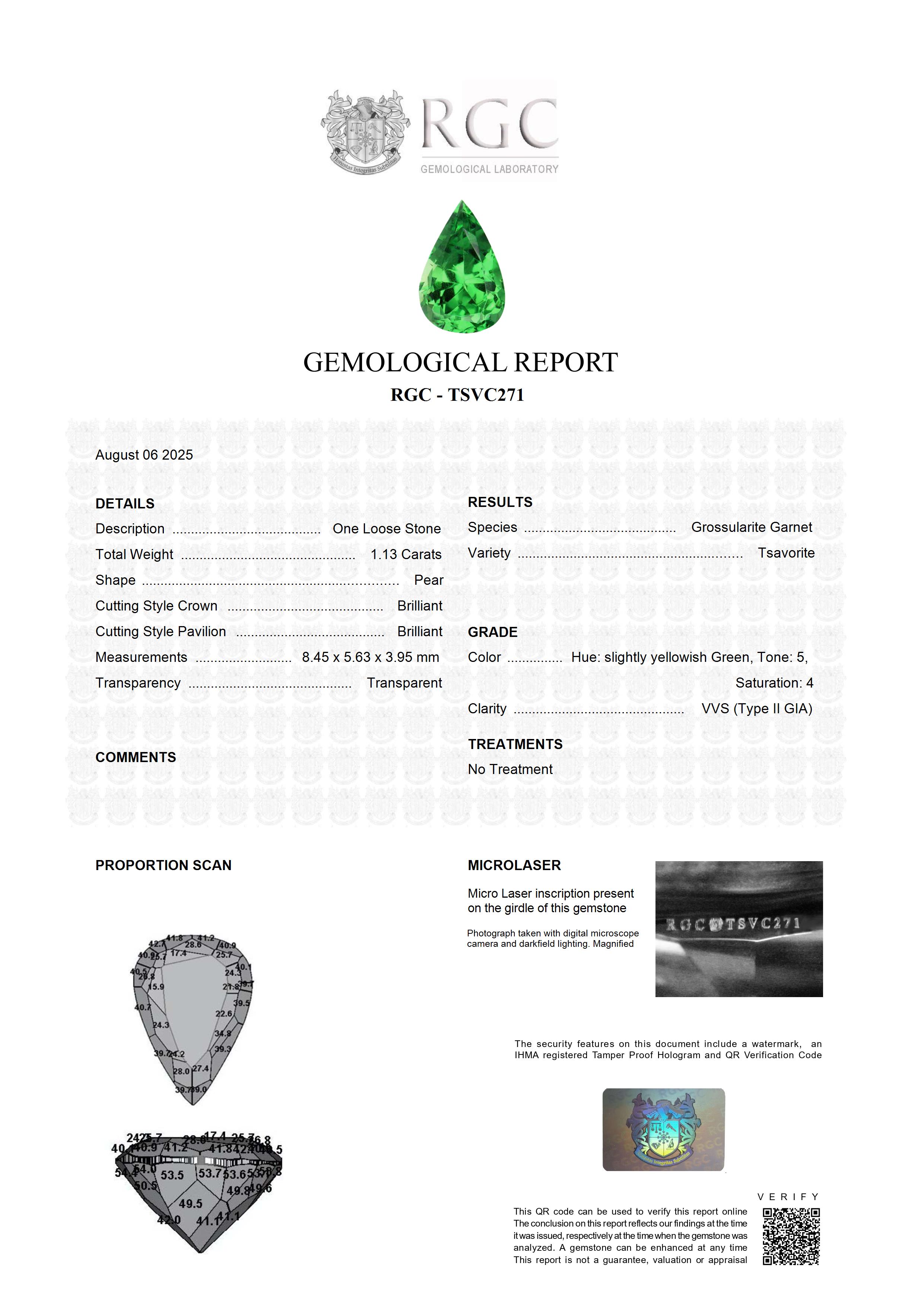 You can view the report in the “Grading and Laboratory Certification” section below.