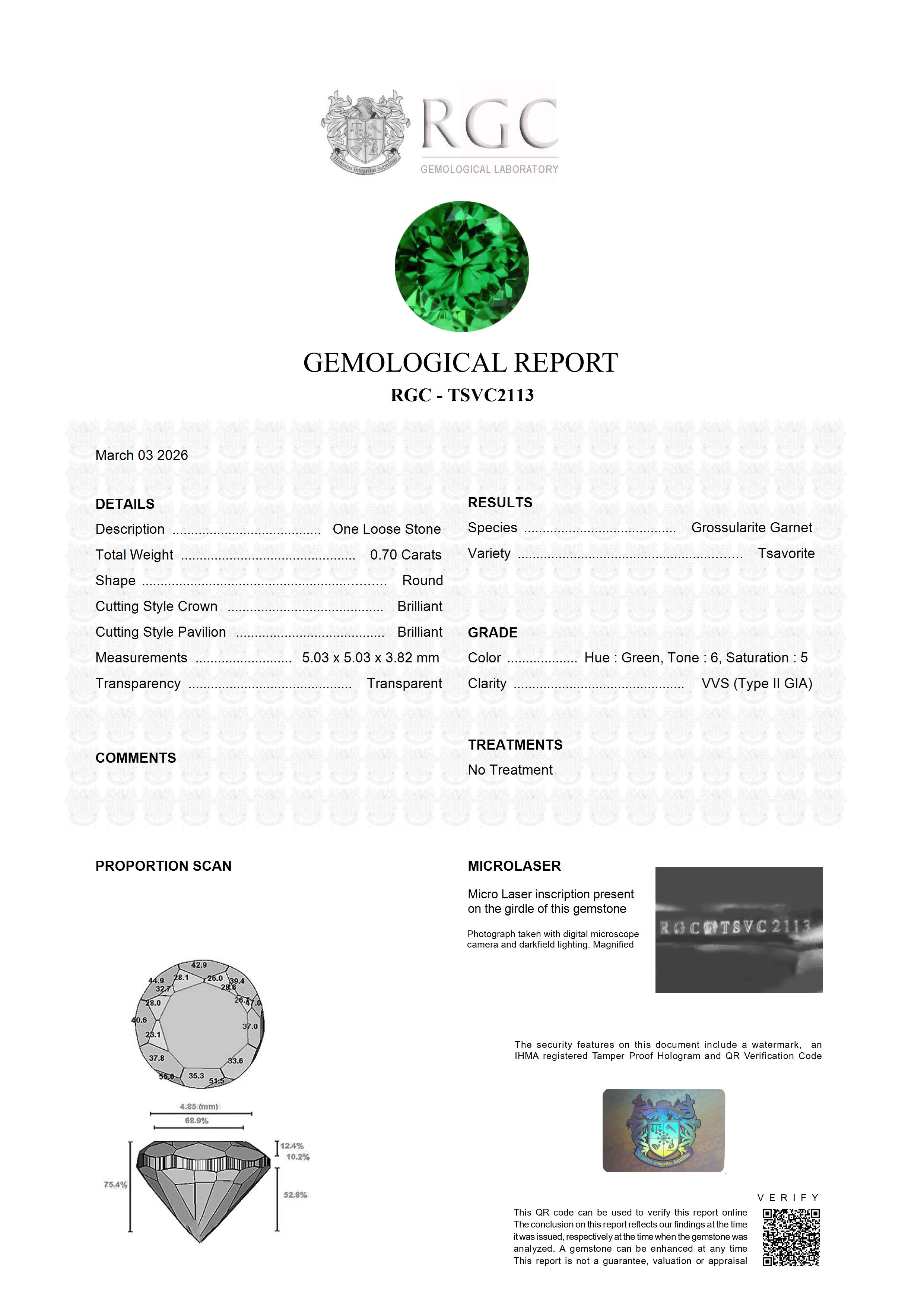 You can view the report in the “Grading and Laboratory Certification” section below.