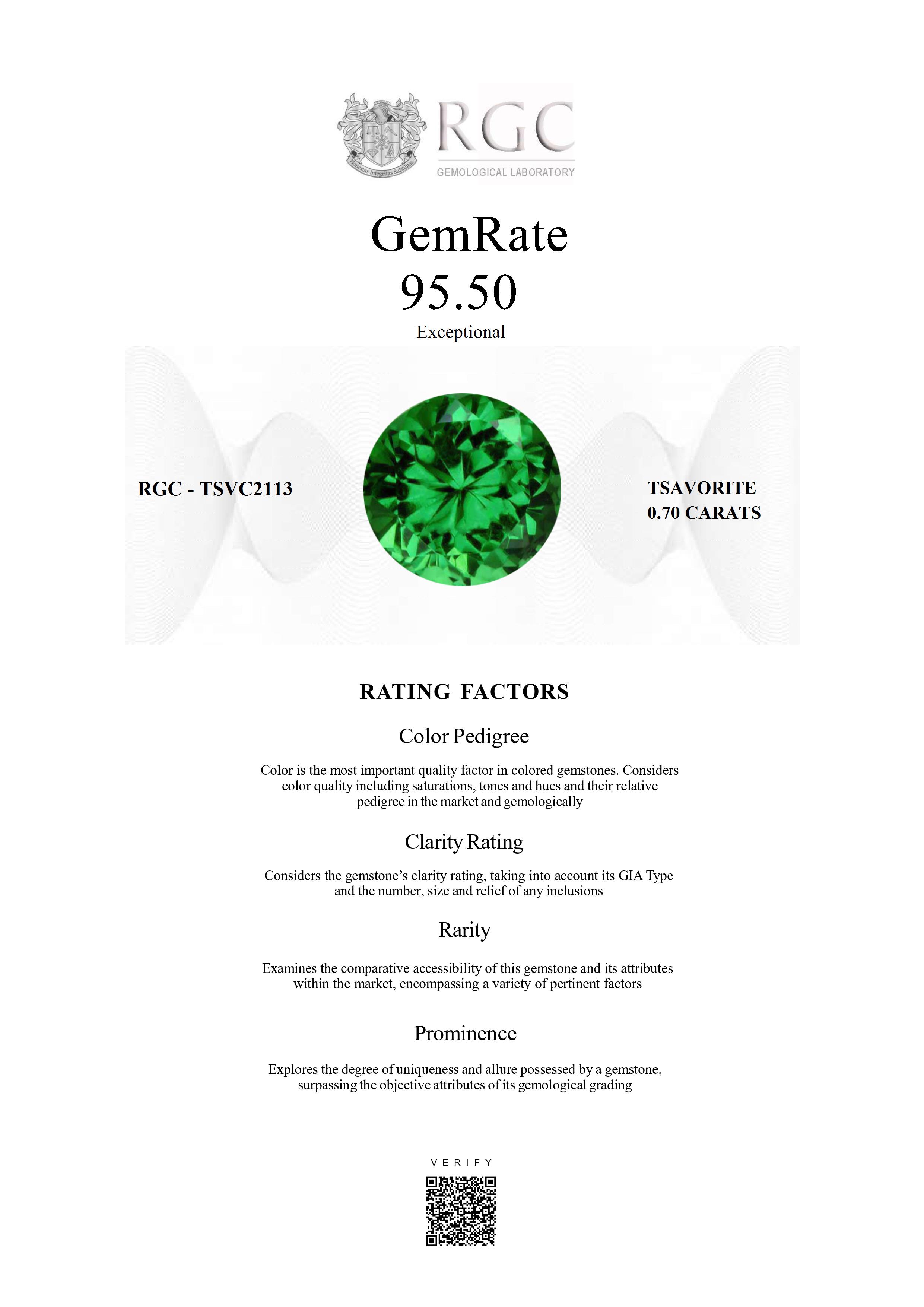 The RGC GemRate is a revolutionary system that addresses the importance and difficulty of comparing different colored gemstones with their peers in the marketplace. It assesses a wide variety of factors that exist in the marketplace and gemologically to classify gems in their genre using a standardized rating system. These factors are myriad but include quantifiable factors like color grade, clarity and cut, rarity factors examining relative rarity and also qualitative factors such as prominence, which examines the degree to which a gemstone stands out and captivates beyond just its measurable quality traits. It's essentially the stone's ability to catch attention and distinguish itself from others.