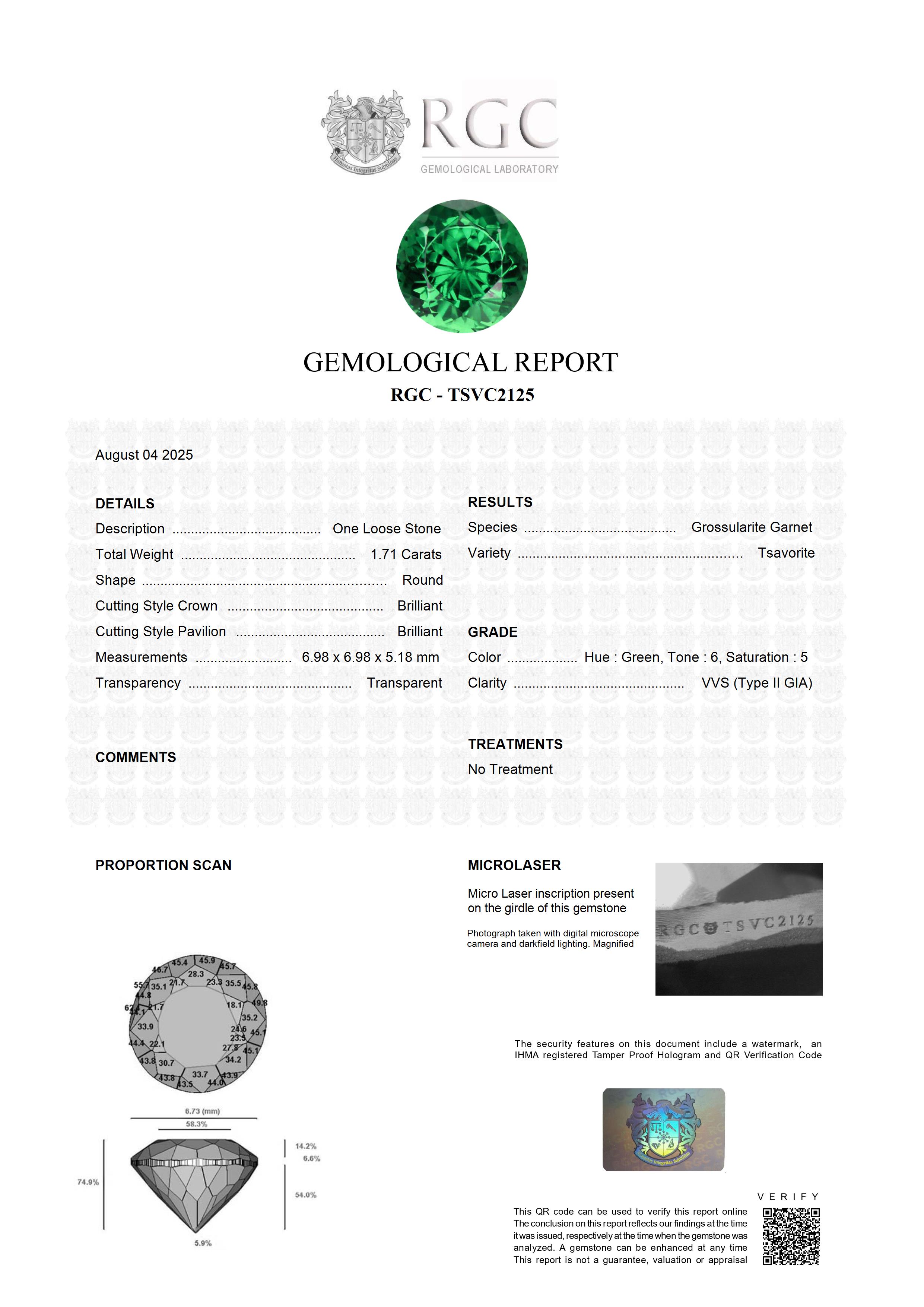 You can view the report in the “Grading and Laboratory Certification” section below.