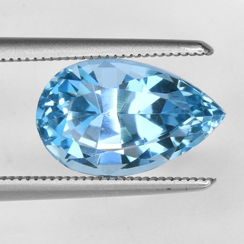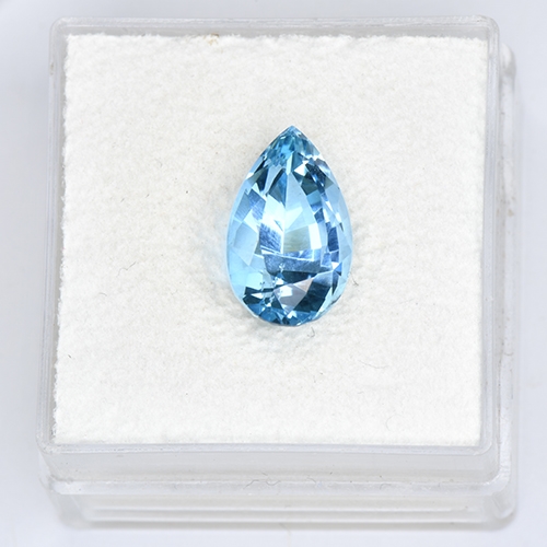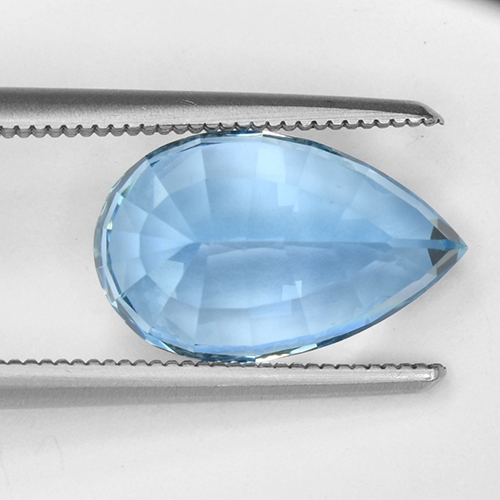 Defined by its superior quality and elegance, this exquisite Pear Cut Aquamarine g is sipping the scales. The standout feature of this gemstone is its vibrant, highly sought-after 'Santa Maria Afrique' coloration. Possessing a deep, rich hue, its blue saturation is perfectly complemented with subtle undertones of green, producing a truly captivating color that is naturally derived, without any treatment or heat application. This gemstone radiates with an extraordinary sparkle ensuring that it commands attention. Uncompromising in its character and charm, this 3.41 carat Aquamarine is infused with remarkable depth and brilliance, making it an exceptional choice for those who appreciate the finest in gemstone quality.