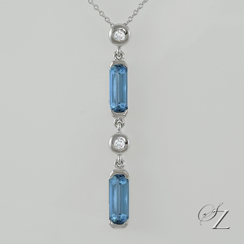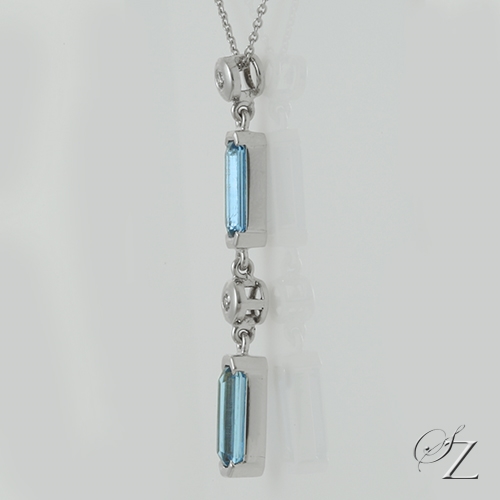MINING & GEOLOGY REPORT View ReportExtremely elegant. Two crisp, intense blue unheated Aquamarines cascade between two sparkling white Diamond brilliants. The elegant long lines of this beautiful pendant will keep your look effortless yet make a huge statement. Complete with a lovely 18 Kt white gold chain.