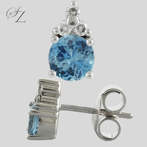 MINING & GEOLOGY REPORT View ReportSuch a super pair of stud earrings. Bright, sparkling blue Meru Aquamarine rounds set with three Diamond brilliant accents above. The perfect pair of earrings to keep your look effortless yet statement making.