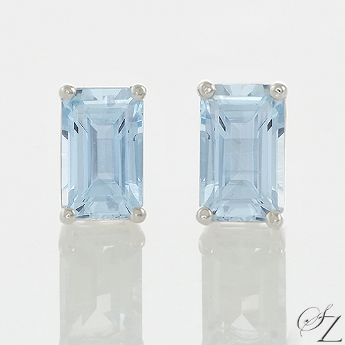 MINING & GEOLOGY REPORT View ReportStunning crisp blue Aquamarine emerald cuts, classically set as stud earrings. Perfect!
