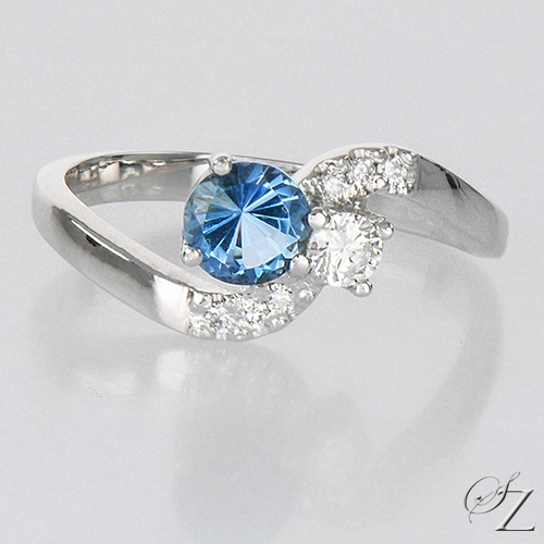 Center Stone: An incredible Aquamarine from Mozambique. Displays an intense blue hue known as “Santa Maria Afrique” in the trade - it is truly sensational. It is flawless and entirely untreated – no heat. Beautifully cut, it truly glows. Superb.