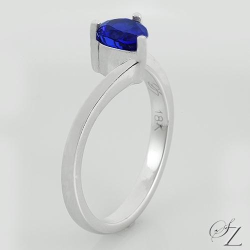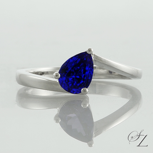 MINING & GEOLOGY REPORT View ReportA pretty little ring featuring an exceptional Tanzanite pear that radiates with a gorgeous cornflower blue hue set asymmetrically. Delicate yet extremely eye catching.