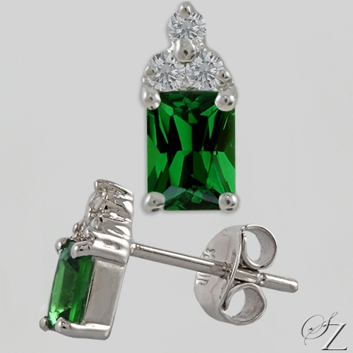 MINING & GEOLOGY REPORT View ReportMake a simple, elegant statement with these pretty earrings. Explosive Tsavorites that look more like baguettes than emerald cuts, due to the wonderful cutting that capture all the light. Set with Diamond accents above, these sparkly earrings are a real joy and can be enjoyed everyday.