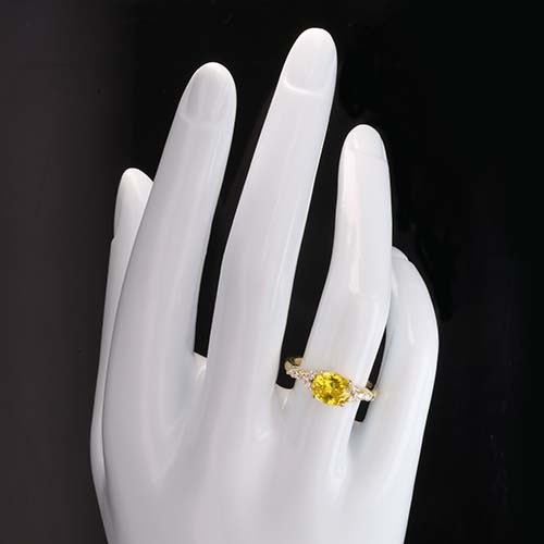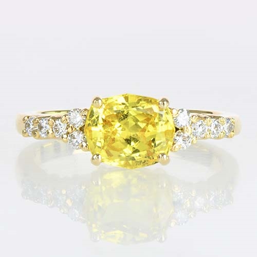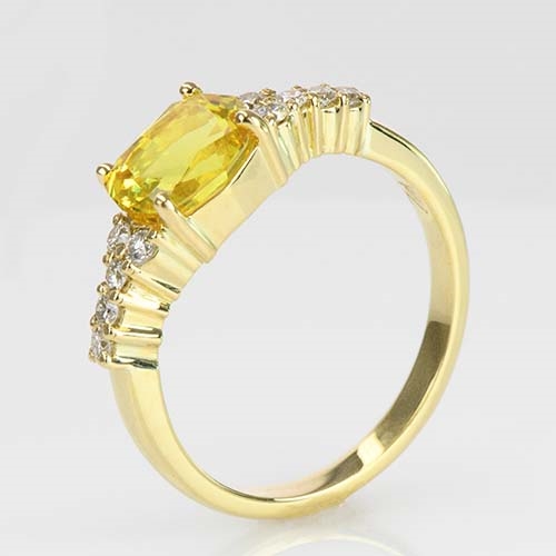 MINING & GEOLOGY REPORT View ReportThe vibrancy and color of this fabulous Canary Yellow Sapphire is sensational! Enhanced by shimmering Diamond accents on each shoulder and in the band, this stunning ring pulsates with energy and light.