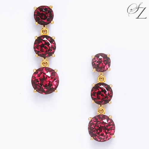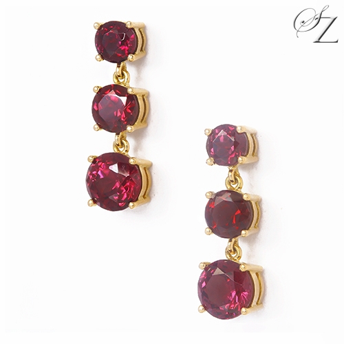 MINING & GEOLOGY REPORT View ReportThese beautiful earrings are made using three pairs of exceptional Rhodolites, their inimitable pinky red hues are intensified by the wonderful warm glow of the yellow gold. A suburb pair of earrings that will add a shot of color and glamour to any occasion.