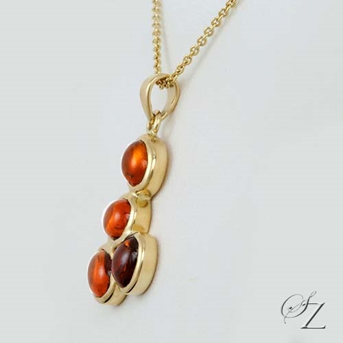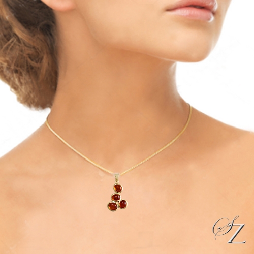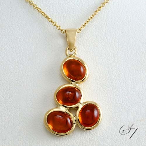 MINING & GEOLOGY REPORT View ReportA captivating pendant featuring four beautiful, warm Malaia Garnet Cabochons, set asymmetrically in rich 18 karat Yellow Gold bezels. A very contemporary and unique design. You can be sure you'll be the only one like it! Complete with a fine 18 Kt gold chain.