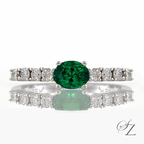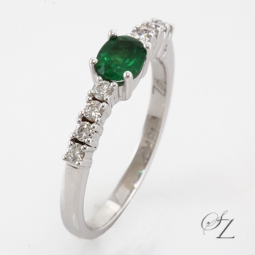MINING & GEOLOGY REPORT View ReportThis gorgeous and romantic ring features an exquisite vivid bluey green Kuranze Tsavorite oval set in a traditional four prong setting with shimmering Diamonds set at the shoulders. A beautiful ring and one I'm sure will be cherished for ever.