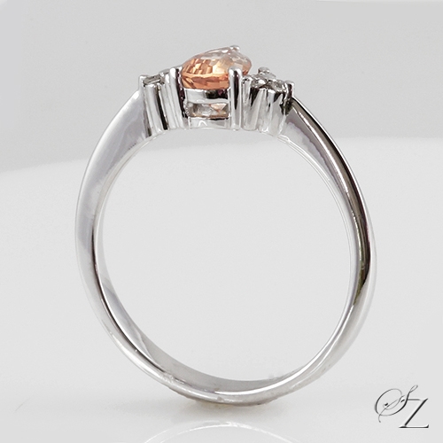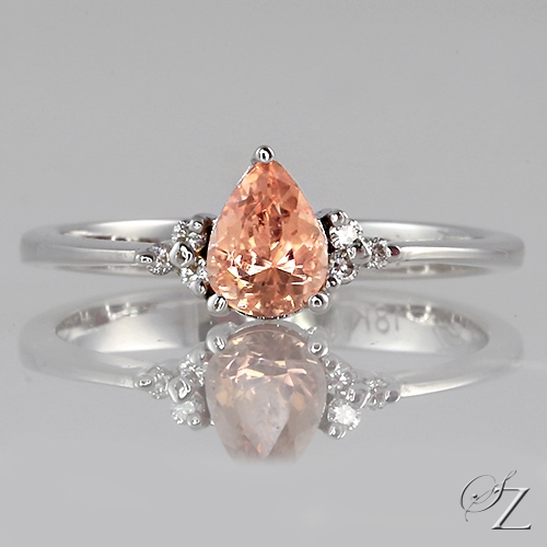 MINING & GEOLOGY REPORT View ReportUtterly gorgeous! A stunning Padparadscha Sapphire from the Umba River Valley in Tanzania, glimmering with pretty pink and peach hues of a lotus flower and glittering fine Diamond accents on either side, this delicate little ring will capture your heart.
