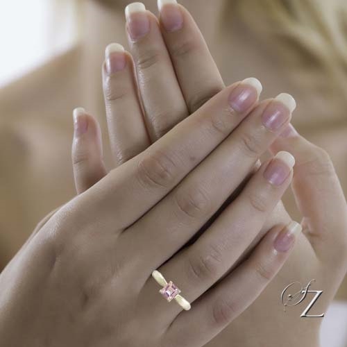 The type of metal used in the setting. In the case of gold, the quality of the metal is expressed in terms of karats. Whereas carat spelt with a “c” is a weight and used to describe gemstone weights, karat with a “k” is actually a ratio and is used to denote gold quality. 24 karat gold is pure gold. As 24 karat gold is generally considered to be too soft to be used in its pure form in jewelry, it is alloyed to make it more durable. 18 karat gold is considered by most designers to be the optimum balance of durability and quality. 18 karat gold is 18 parts gold, 6 parts alloy. 14 karat gold is 14 parts gold and 10 parts alloy and 9 karat gold is only 9 parts gold and 15 parts alloy so is actually more alloy than gold. The alloy is used to change the color. So white gold contains platinum metals like rhodium and palladium to make it look more white whilst rose gold is gold alloyed with copper to make it look more pink.