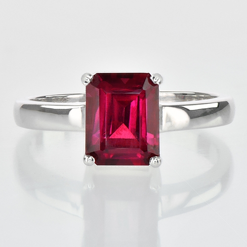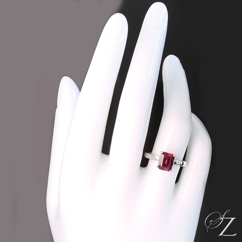 Center Stone: This is a very beautiful Rhodolite. A wonderful emerald cut with mesmerizing red hues with hints of pink. Plenty of brilliance, flawless clarity and top cutting. Gorgeous.