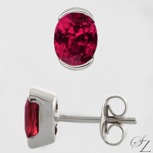 Center Stone: A very fine Rhodolite pair of ovals hailing from the Kangala deposit in Tanzania. A very intense red hue with a stunning purple modifier which really "pops" under incandescent light. Extremely beautiful.