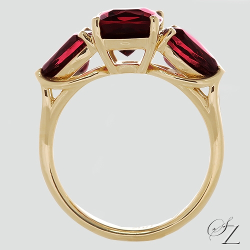 MINING & GEOLOGY REPORT View ReportStunning, rich pinky red hues and glimmering gold - divine! Elegant weaving baskets adorns the under gallery to give this gorgeous trilogy ring a chic, elegant touch of glamour.