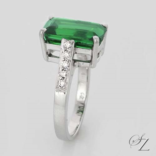 MINING & GEOLOGY REPORT View ReportRare, One of a Kind and Spectacular! No more need be said about this very fine, elegant and eye catching ring. The centerstone is an extremely rare 5.80 carat top grade Tsavorite. When you understand that even the Smithsonian Gem Collection's prize piece of Tsavorite is only 7 carats, you can begin to comprehend the rarity of what you will be wearing on your finger. This is a very special piece indeed.
