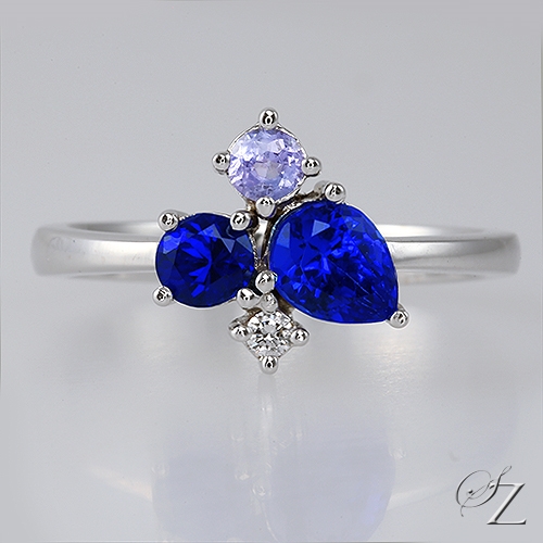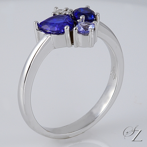 MINING & GEOLOGY REPORT View ReportThe luster in this cluster ring is simply irresistible. The hues and colors of these three fabulous little Tanzanites are stunning, and beautiful bouquet of vibrant blue.