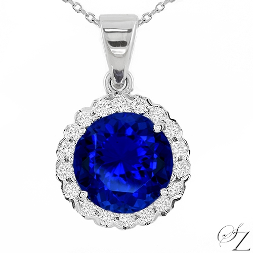 MINING & GEOLOGY REPORT View ReportCrisp, deed velvety blue hues and beaming with sparkle. A stunning halo pendant featuring an exceptional, fine grade 5.80ct flawless Tanzanite. Extraordinary glamour at its finest.