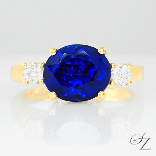 MINING & GEOLOGY REPORT View ReportBreathtaking. The bold contrast between the richly colored corn flower blue of the Tanzanite, the warm yellow gold and the simplicity of the white Diamonds blend together beautifully to create a divine unity and a ring that radiates.