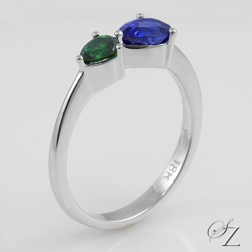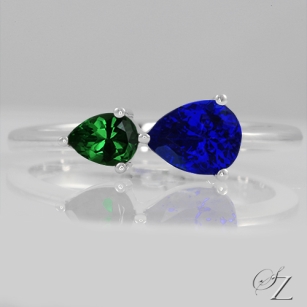This gorgeous ring features two of Africa's finest, a fine, top color Tanzanite and Tsavorite delicately set with elegant prongs, keeping the ring slim and uncomplicated.