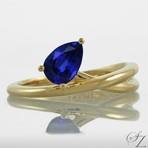 MINING & GEOLOGY REPORT View ReportThis asymmetric beauty boasts a gorgeous, deeply saturated Tanzanite in wonderful warm, contrasting 18k yellow gold that wraps elegantly around the finger, ending with that incredible pop of blue. Stunning!