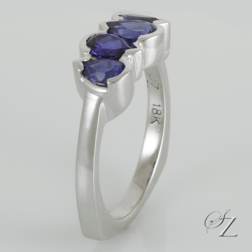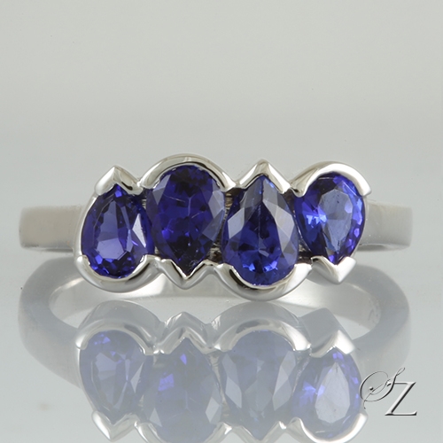 MINING & GEOLOGY REPORT View ReportIrresistibly elegant... Four wonderfully blue Tanzanite pears set opposite each other in half bezels of white gold to create this intricate and pretty ring.