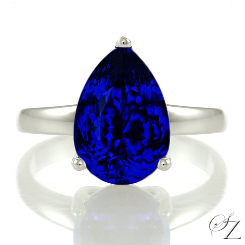 MINING & GEOLOGY REPORT View ReportWonderfully bold and statement making. This fabulous solitaire boasts an incredible vibrant blue Tanzanite pear, elegantly raised in a fine pirouette socket, keeping the stone as the main feature, drawing you into its velvety depths.