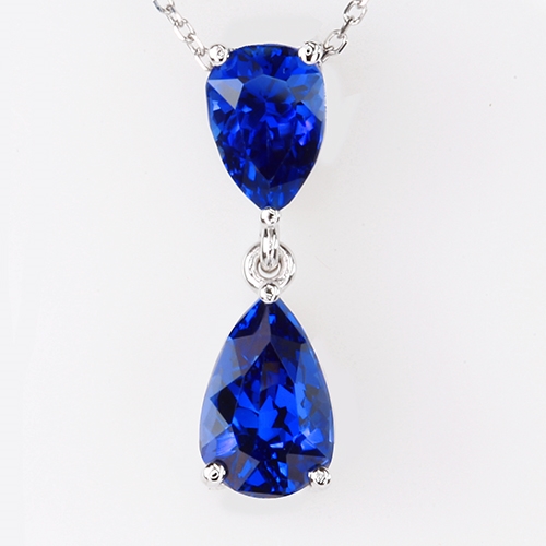 MINING & GEOLOGY REPORT View ReportAlluring blue Tanzanites set delicately below one another as a drop pendant, a classic beauty that stands out on its own.