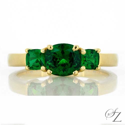 MINING & GEOLOGY REPORT View ReportThis stunning Tsavorite 3 stone ring is absolutely classic in design and rich with vivid color and bright sparkle. An absolute must.