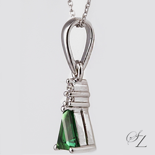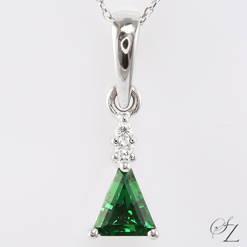 MINING & GEOLOGY REPORT View ReportA marvelous sharp green Tsavorite trillion below a shimmer of Diamonds, the perfect way to add a touch of color and glamour.