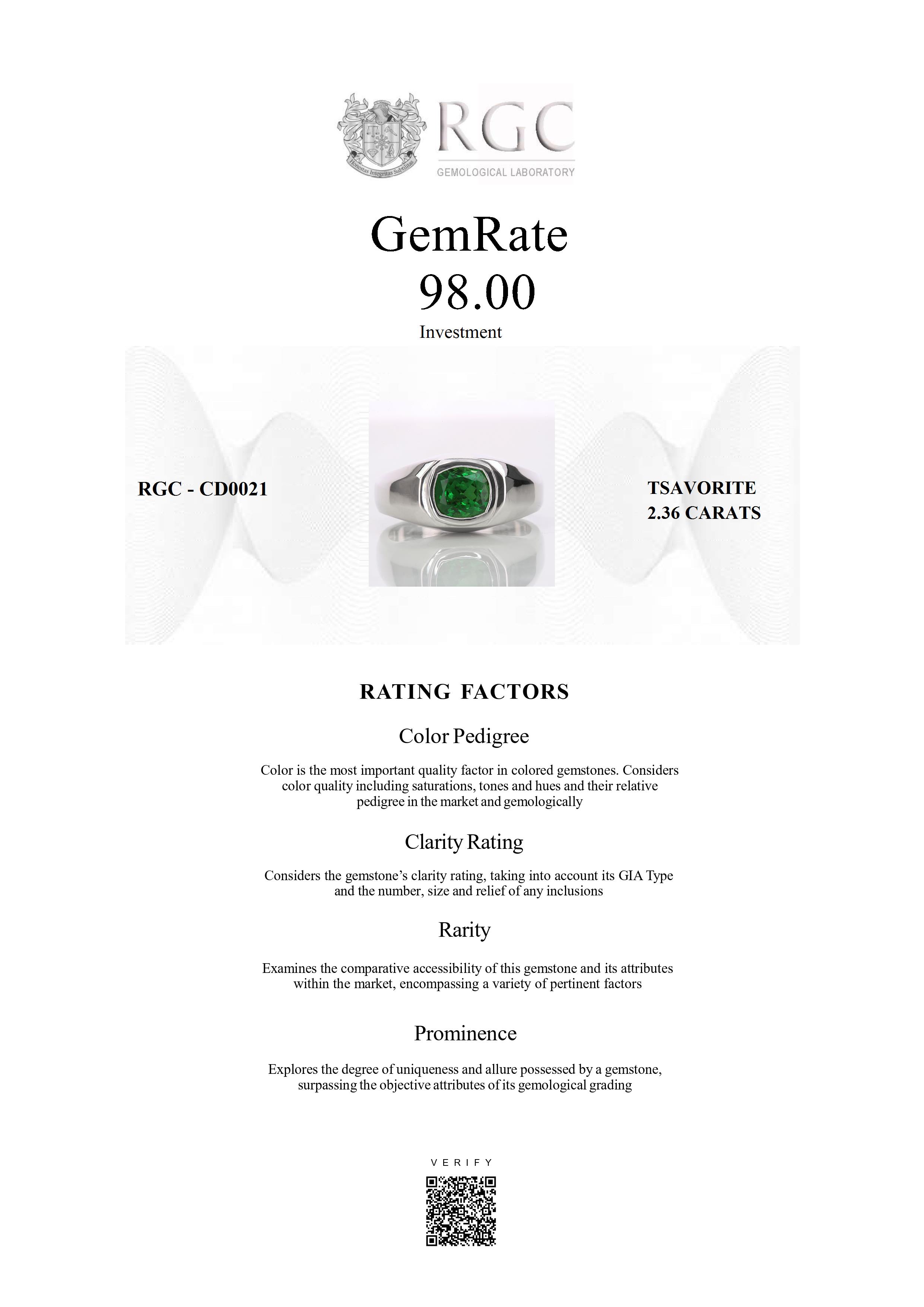 The RGC GemRate is a revolutionary system that addresses the importance and difficulty of comparing different colored gemstones with their peers in the marketplace. It assesses a wide variety of factors that exist in the marketplace and gemologically to classify gems in their genre using a standardized rating system. These factors are myriad but include quantifiable factors like color grade, clarity and cut, rarity factors examining relative rarity and also qualitative factors such as prominence, which examines the degree to which a gemstone stands out and captivates beyond just its measurable quality traits. It's essentially the stone's ability to catch attention and distinguish itself from others.